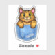 Orangefarbene Katze in Imitaten Denim Pocket mit I Aufkleber