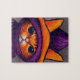 Orangefarbene Katze mit Lila Hexenhut Zeichnend Puzzle