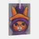 Orangefarbene Katze mit Lila Hexenhuttholz Ornament Aus Glas