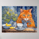 Orangefarbene Katze mit Zitrone Tee Poster