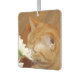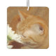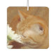 Orangefarbene Katze riecht nach den Blume Autolufterfrischer
