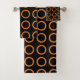 Orangefarbene Kreise schwarz Badhandtuch Set