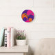 Orangefarbene, Lila und Hot-Pink-Polka-Punkte Runde Wanduhr
