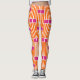 Diese Leggings haben ein modernes Design von orangen vertikalen Linien mit rosa Rechtecken darüber, wiederholt über dem Design.