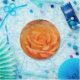 Atemberaubendes nah-up einer orangefarbenen Rose mit Morgentau