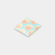 Orangefarbene Scheiben auf blau Post-it Klebezettel