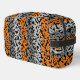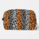 Orangefarbene schwarz pixelförmige Streifen Waschbeutel