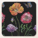 Orangefarbene Untersetzer aus schwarzem Mohnblumen. Ein glorreicher Keramik Fliesendesign. Entworfen aus meinen ursprünglichen Aquarellbildern, die ich aus meinem eigenen Blumengarten gemalt habe.