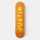 Für ihn, für sie oder für sie ist das Orangenskateboard Ihr personalisierter Name in einer fetten, funky und grunge bedrückten Schrift. Das perfekte abstrakte Design für einen Teenager-Geburtstag oder ein Weihnachtsgeschenk. Schreiben Sie einfach Ihren eigenen Namen für ein individuelles Skateboard.