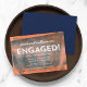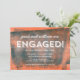 Moderne Engagement Party Einladung mit den Worten "Verlobt!" in Weiß vor einem orangefarbenen und blau gerollten Farbmuster Hintergrund. Die Einladung beinhaltet eine blaue Rückseite. Personalisieren Sie es, indem Sie den Platzhalter-Text ersetzen, um Ihre Informationen hinzuzufügen. Für weitere Optionen, wie zum Beispiel den Schriftart zu ändern und ihn zu vergrößern oder zu verändern, klicken Sie auf den Button "Anpassen". *Bitte beachten Sie, dass das Zazzle-Wasserzeichen, das in der Zoomvorschau angezeigt wird, NICHT auf dem gedruckten Endprodukt erscheint. © Rosewood and Citrus