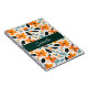 Orangefarbene Blume, blaues und dunkelgrünes Blattwerk, personalisiertes Notizbuch.