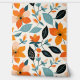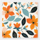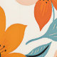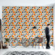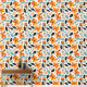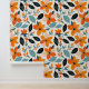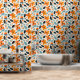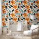 Orangefarbene Blume, blauer und dunkelgrüner Blattblumenstock und abziehbare Tapeten.