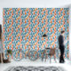 Orangefarbene und Blaue Pinienbäume Tapete