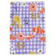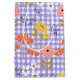 Hellorange und gelbe doodale Blume auf weißem und lila Gingham