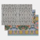 Orangefarbene und graue Blume und Doodles Geschenkpapier Set