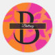 Orangefarbene und heiß rosa Farbenmonogramm Runder Aufkleber