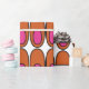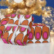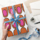 Dieses Verpackungspapier hat ein modernes Design von wiederholenden Orangenovalen mit rosa Ovalen im Inneren.