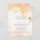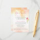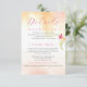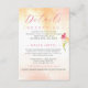 Laden Sie Ihre Gäste zu einem besonderen Cocktail-Stunden und Abendessen Empfang, lass ihnen wissen, über besondere Unterkunft Preise, informieren Sie sie über Ihre Hochzeitswebsite, verwenden Sie diese Karte für wichtige Informationen. Tropisch orangefarbenes Waschbecken. Delikate Typografie in heißen Rosa (passen Sie diese Farbwahl an, wenn Sie möchten). Akzentriert mit Single wasserfarbene Freesia Blüte, kehrt zur Farbe Waschtextur.