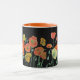 Orangefarbene und schwarze Pflaumen Wasserfarben Tasse. Ein wunderschönes Blumendesign in Aquarelltönen. Entworfen aus meinen ursprünglichen Aquarellbildern, die ich aus meinem eigenen Blumengarten gemalt habe.