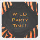 Orangefarbene und schwarze Zebra-Monogramm Quadratischer Aufkleber