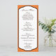Orangefarbene und weiße Rezeptionsmenüs Menükarte