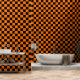 Orangefarbene Wanddekoration mit schwarzem kariert Tapete