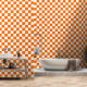Orangefarbene Wanddekoration mit weißem karierten Tapete