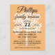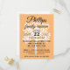 Orangefarbene Wiedersehen-Postkarte mit einer weißen Baumstruktur-Silhouette und anpassbaren Textfeldern für alle Ihre Wiedersehen-Informationen.