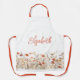 Genießen Sie die stilvolle Arbeit in der Küche oder im Studio mit dieser Schürze, die mit bohfarbenen Wildblumen in einer orangefarbenen Farbgebung dekoriert ist. Personalisieren Sie mit Ihrem Namen oder dem eines geliebten Menschen.