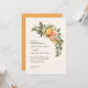 Orangefarbene Zitrusblüte moderne rustikale Aquarell Blüten und Blätter Hochzeitskarte. Schöne handgedruckte Aquarellfarben mit floralen Aquarellen und moderner Schriftzeichen. Modernes Design für Trends