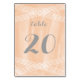 Klassische und elegante Watercolor Deko Tischnummer Card mit modernem gestreiften, kreuz-kreuz gestreiften Deko-Design in Weiß und dezenten Orangen-Aquarellfarben. Diese einfache und schicke Tischkarte kann einfach mit Ihren Hochzeitsdetails angepasst werden. Klicken Sie für weitere Personalisierungsoptionen auf Anpassen.