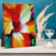 aus der originalen Aquarellmalerei von Sacha Grossel mit hellorangen und gelben tropischen Hibiskus-Blume. Dieses farbenprächtige, lebendige, tropische Blumendesign ist warm und fröhlich und bringt ein Gefühl der Tropen, Sommer, heiße Wetter, Hawaii in einem natürlichen botanischen Design für Blume und botanische Design Liebhaber überall.