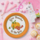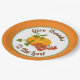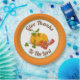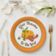 Orangefarbene Kürbisbeeren, Blätter fallen Erntedank Papierteller. Es enthält einen gelben und orangefarbenen Kürbis mit Blätter, roten Beeren und der Text geht" Give Dankeschön an den Herrn". Es ist ein orangefarbener Rand.