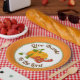 Orangefarbener Kürbis, Beeren, Blätter fallen Ernt Pappteller