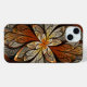 Case-Mate Handy Fall mit "La Chanteuse Flamme", Copyright © 2014, Susan Wallace. Abstrakte Blätter aus Buntglas in Orange-, Gelb- und Weißtönen bilden eine zentrale Blume.