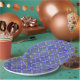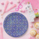 Orangefarbenes, blau gecrolltes Diamantmuster Pappteller