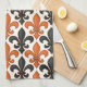 Orangefarbenes Fleur-de-lis-Muster Geschirrtuch