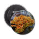 Für Pilzsucher! Der runde Flaschenöffner zeigt das Foto eines hellen, orangefarbenen Pilzes mit Huhn-of-the-Woods-Stil, der gemeinhin als Sulfatzelf und Hühnerpilz bezeichnet wird. Und ja, dieser Pilz ist essbar! Spaß auch für mykologische Gesellschaften.