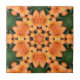 Genießen Sie diese mosaikfarbene Keramik mit leuchtend orangefarbenem Blumenmuster mit grünen Akzenten. Dieses Stück fügt Ihrem Fliesenwerk oder Ihrer Wohngestaltung einen Farbspritzer hinzu.