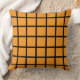 Orangefarbenes quadratisches Muster und schwarze R Kissen