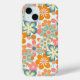 Orangefarbenes rosa Monogramm Retro-Blume-Muster Case-Mate iPhone Hülle