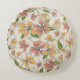 Genießen Sie die spielerischen Blume in diesem Retro-Design. Orangefarbenes rosa tropisches Retro Floral Rundkissen.