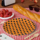 Orangefarbenes Schwarzes Polka-Dot-Party Pappteller