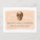 Trendy und cool Watercolor Skull Halloween Postcard mit hellorangefarbenem Aquarellhintergrund und einem gruseligen Schädel. Diese einzigartige und moderne Postkarte lässt sich leicht mit Ihrem eigenen, spöttischen Halloween-Gruß anpassen. Klicken Sie auf Anpassen, um weitere Anpassungsoptionen zu erhalten.