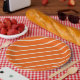 Orangefarbenes und weißgestrichenes Party Pappteller