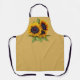 Schöne grüne Schürze mit großen, blühenden Sonnenblumen in hellgelben und verbrannten Orangen mit Farn und Salbeigrün. Ideal, um einen rustikalen Sommer- oder Herbstfall in Ihrer Küche zu bringen!