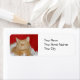 Orangefarbene Katze in weißer Weihnachtsgarage mit rotem Hintergrund Foto Weihnachtsanschrift