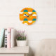 Orangelbes, Aquamarin-blaues, grünes Retro-Muster Große Wanduhr