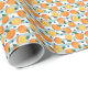 Orangen auf gestreiftem Hintergrund, Sommermuster. Geschenkpapier
