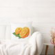 Dieses prächtige dekorative Kissen mit zwei Orangen und einer halborangefarbenen Kissen mit drei orangefarbenen Blätter auf einem durchsichtigen Hintergrund (weiß in der Probe verwendet) oder einer benutzerdefinierten Hintergrundfarbe ist das perfekte Zubehör, um jeden Raum zu behaglich zu machen. Es eignet sich hervorragend, um Ihre Küche oder Wohnzimmerdekoration farblich zu gestalten.
